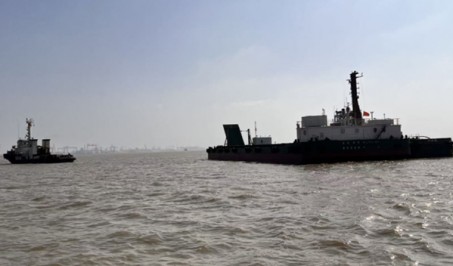 A Deck barge towed from Shanghai, CN to Busan, KR in 2.48 days by 3,..