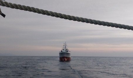 A Fishing vessel towed from Dalian, CN to Nagasaki, JP in 7.5 days b..
