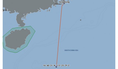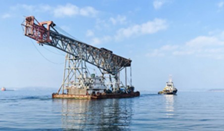 A Crane barge towed from Haikou, CN to Sihanoukville, KHM in 7.5 day..