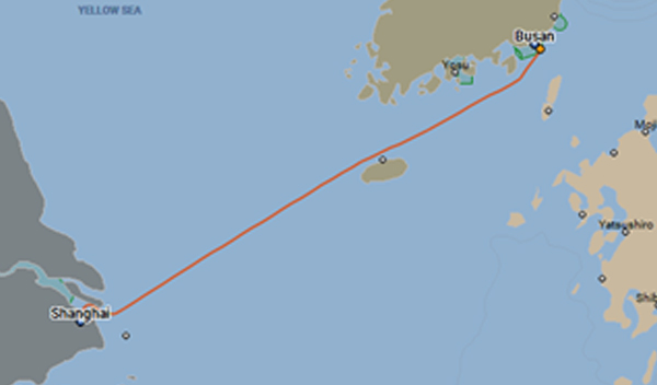 A Deck barge towed from Shanghai, CN to Busan, KR in 2.48 days by 3,480hp class tug