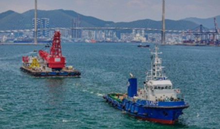 A Crane Barge towed from Busan, KR to Kaohsiung, TW in 6 days by 4,8..