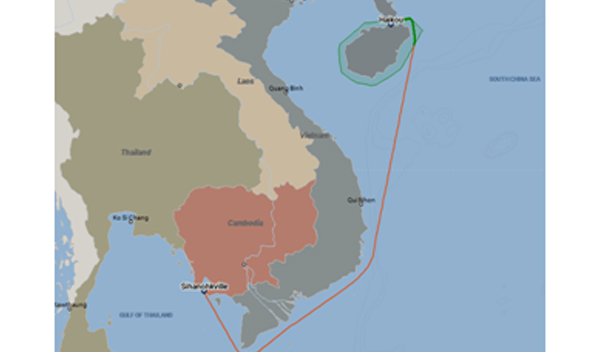 A Crane barge towed from Haikou, CN to Sihanoukville, KHM in 7.5 days by 4,000hp class tug