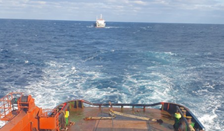 A Fishing vessel towed from Rendezvous point to Busan, KR in 14 days..