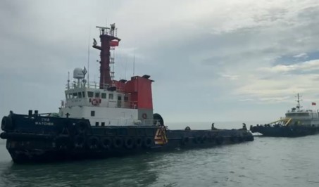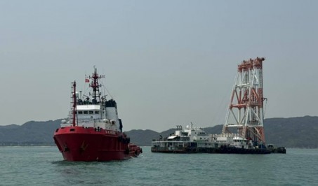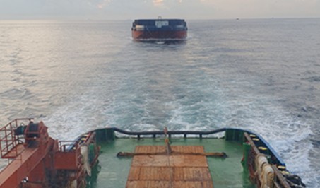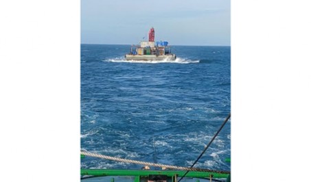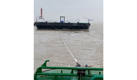 A DCM Barge towed from Hongkong to Geoje,KR in 8 days by 4,000hp cla..