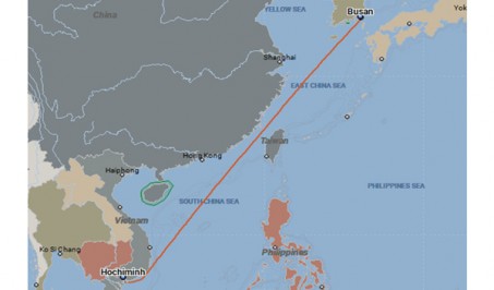 A Deck Barge towed from Hochiming, VNM to Busan, KR in 14 days by 4,..