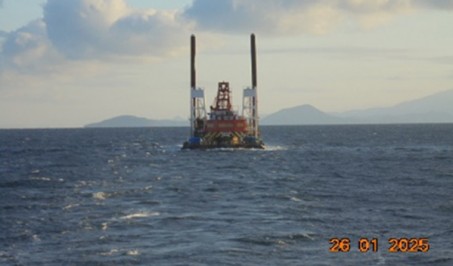 A Grab Barge towed from Takamatsu, JP to Mataphut, TH in 8 days by 3..