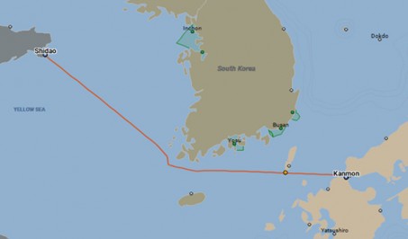 A Cargo ship towed from Kanmon, JP to Shidao, CN in 4 days by 4,000h..