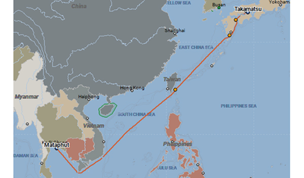 A Grab Barge towed from Takamatsu, JP to Mataphut, TH in 8 days by 3,600hp class tug